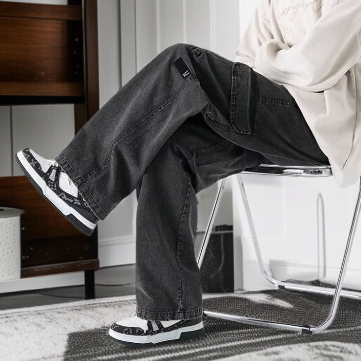 아메리칸 트렌드 와이드 일자 빈티지 워싱 카고 와이드 팬츠 남성복 바지 추동 포켓 신상 캐주얼 팬츠